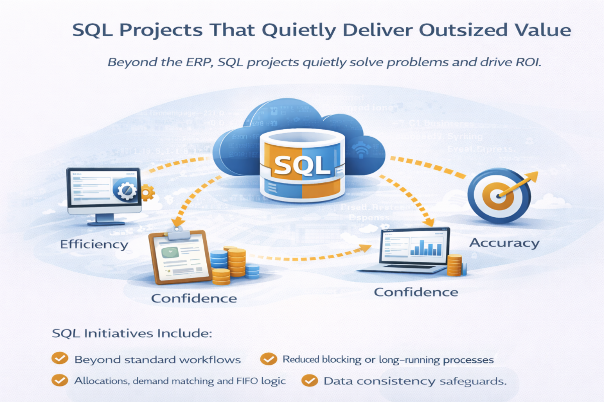 Across many recent engagements, some of the fastest-moving, highest-ROI work has lived one layer below the ERP interface—in SQL.