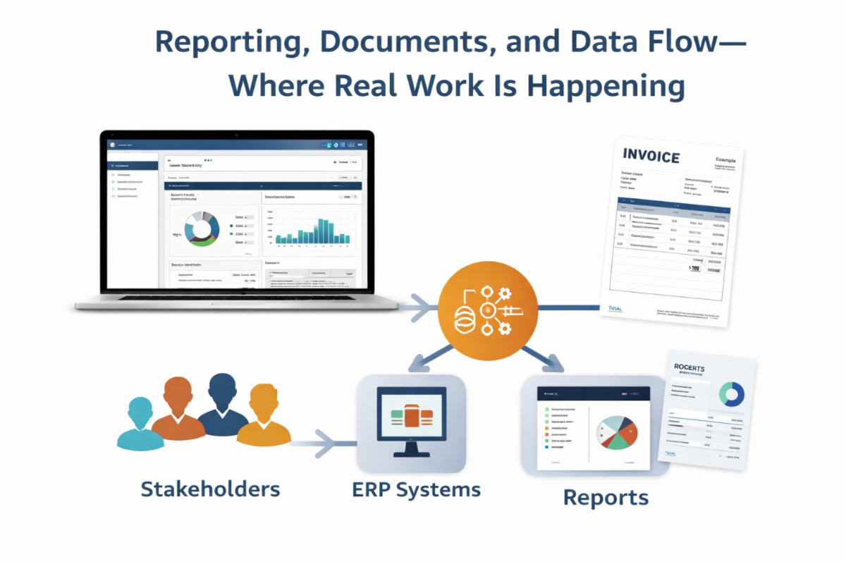 Reporting, Documents, and Data Flow — Where Real Work Is Happening