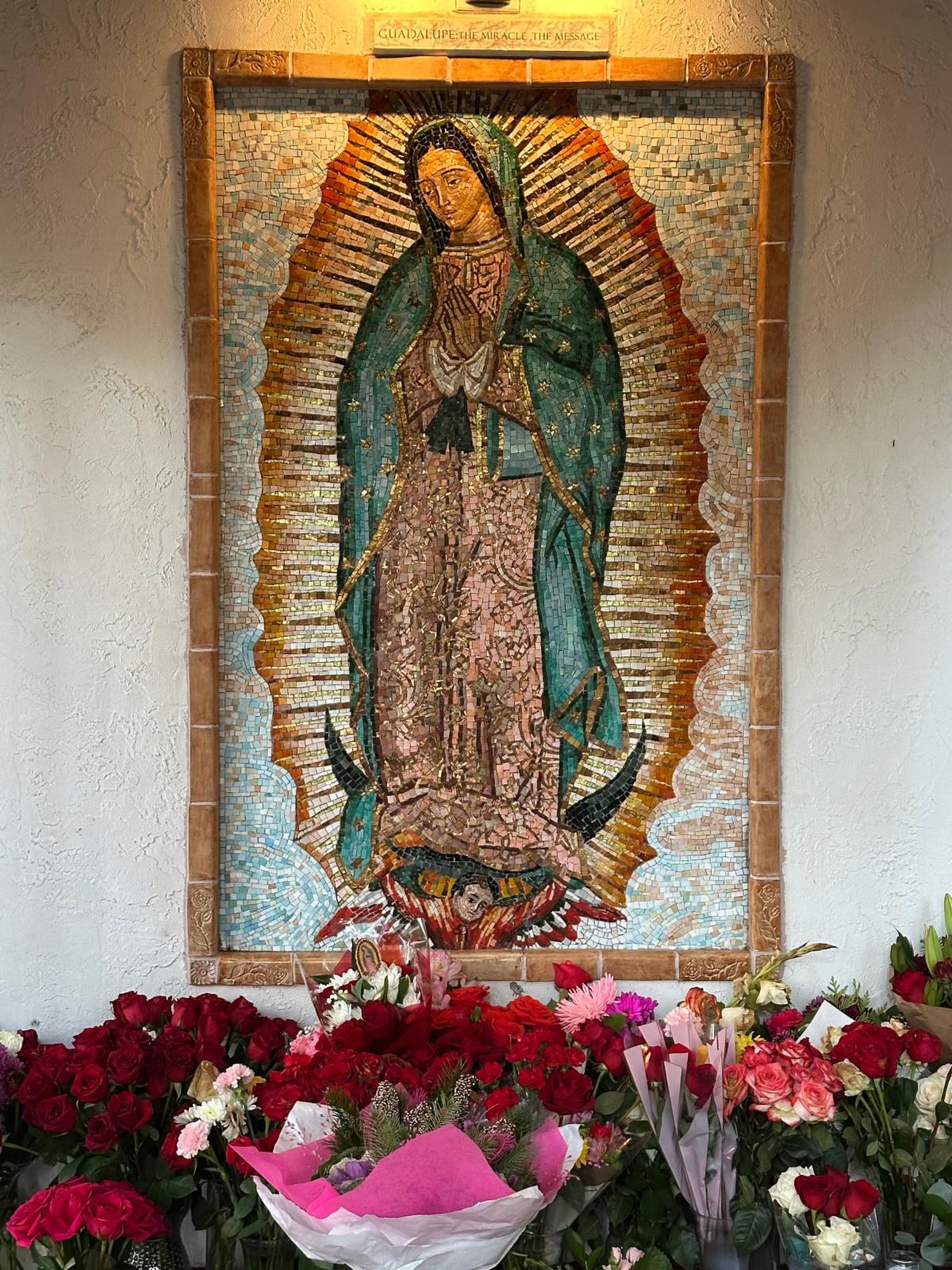 | | Mosaic of St. Guadalupe at the Grotto | The altar at the All-Day Meditation | | | |