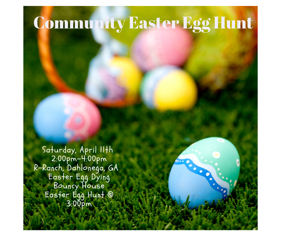 11th Community Easter Eggtravaganza: The Lumpkin County Sheriff's Office will be teaming up once again with R-Ranch in the mountains and the Lumpkin Family Connections to host one of the largest Easter Egg Hunts in North Georgia. The festivities will take place at the Lodge of the R-Ranch, 65 R-Ranch Drive, Dahlonega, GA. We will have Easter Egg Dying, Bouncy Houses and more starting at 2:00pm. The Easter Egg Hunt will begin PROMPTLY at 3:00pm. All activities will be concluded at 4:00pm. There is no charge!
