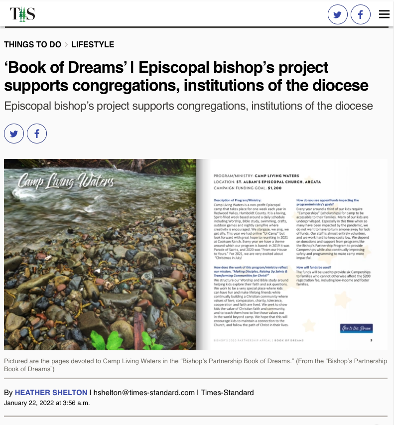 Camp Living Waters and Book of Dreams gets coverage for their project