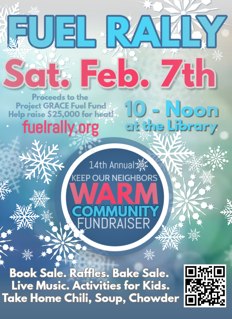 The 14th annual Fuel Rally community fundraiser by Project GRACE will be Saturday, February 7th from 10:00am-Noon at the Scarborough Public Library. The rally raises critical funds for fuel assistance for neighbors in need, with a goal of $25,000 to get neighbors through the winter.