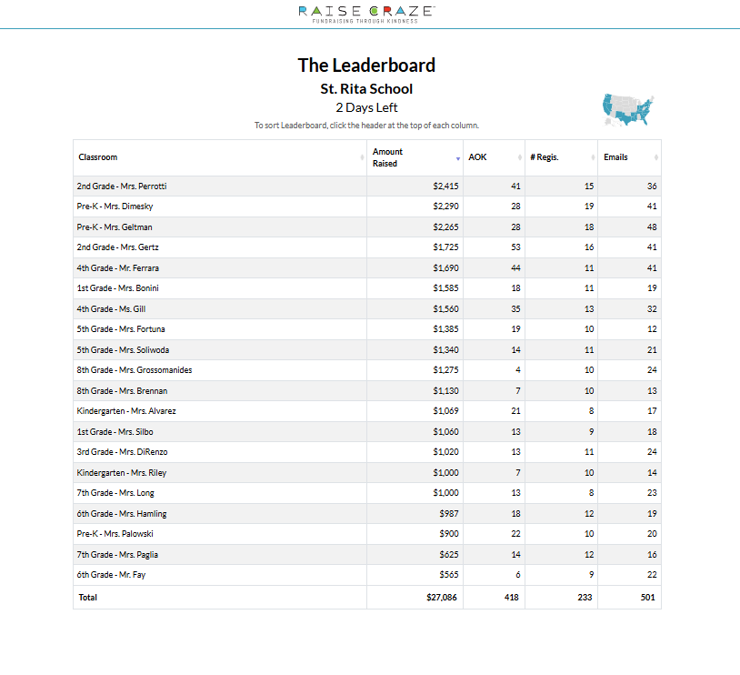 Our Raise Craze fundraiser will close tomorrow night at midnight. The class with the most money raised wins a Pizza Party – Mrs. Dimesky’s class is currently in the lead. Thank you so much for all the SR students’ and their families’ support of this very important fundraiser. As a thank-you we invite all to join us at noon dismissal tomorrow to see the beautifully decorated hallways and doors. Enjoy some popcorn with your children as we celebrate the generosity and kindness of our school community!