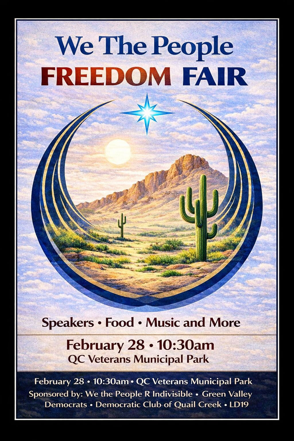 This event is sponsored by We the People R Indivisible (Green Valley-Sahuarita Indivisible chapter), the Green Valley Democrats, the Democratic Club of Quail Creek, and LD19 (Legislative District 19).