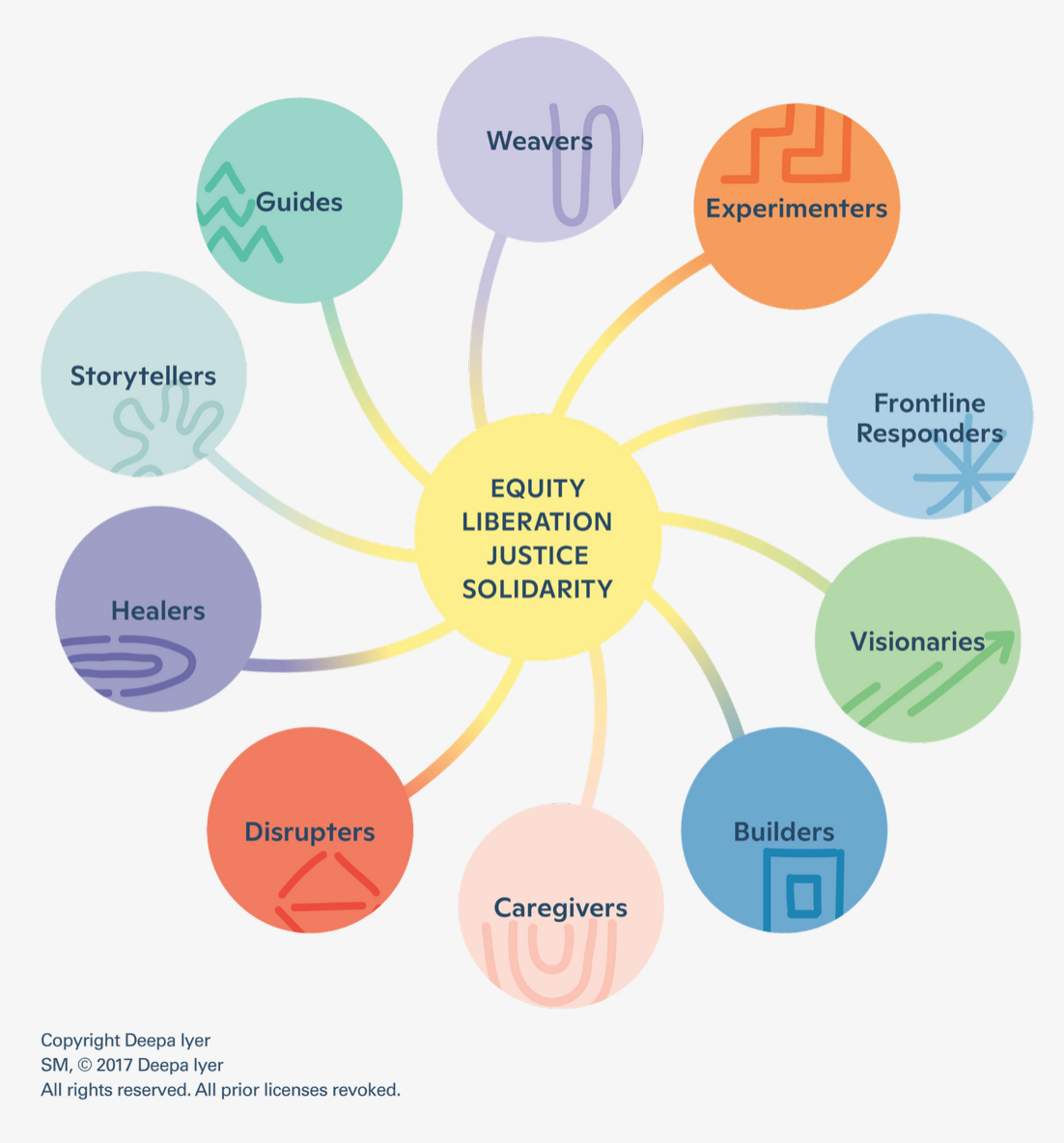 - Circles of Connection; Gay Riseborough - Honoring Our Founders; Jean Durkin - Do Unto Others Grid Painting; Will & Johna Van Dyke - Octopi and Snake; Craig Jobson - Stamps for Resistance; Chris Yoo - Valentines;