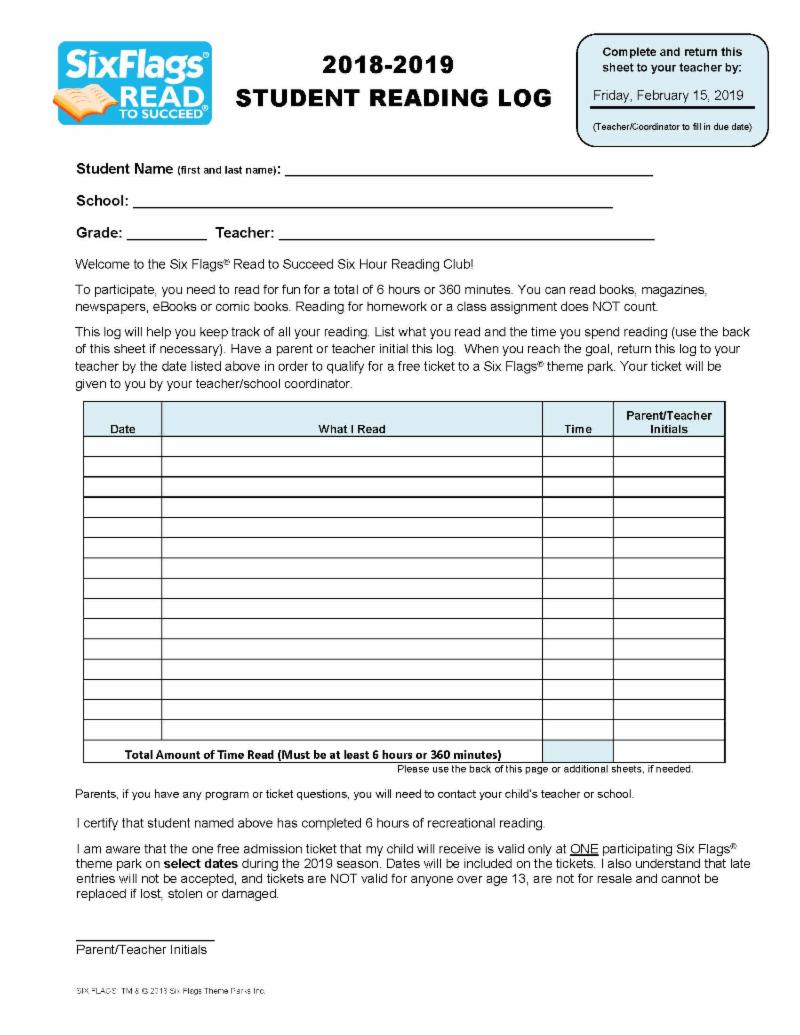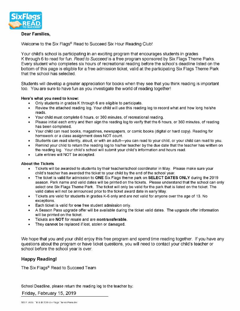 - Six Flags Read to Succeed Forms are DUE!