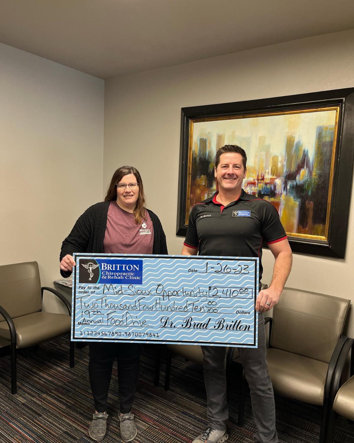 We recently received another generous donation from Britton Chiropractic. They held their 19th Annual Food/Funds Drive for the Akron outreach crisis and food pantry programs.