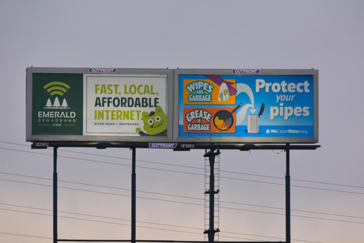You might have seen these ads on your TV, heard them on Spotify, or noticed them on billboards around town. All of them are from the MWMC! We're running an ad campaign reminding people to put grease and wipes in the garbage, not down their drains. Grease and wipes clog pipes, and if they enter the wastewater system they can break pumps and cause backups, which requires time and money to fix.