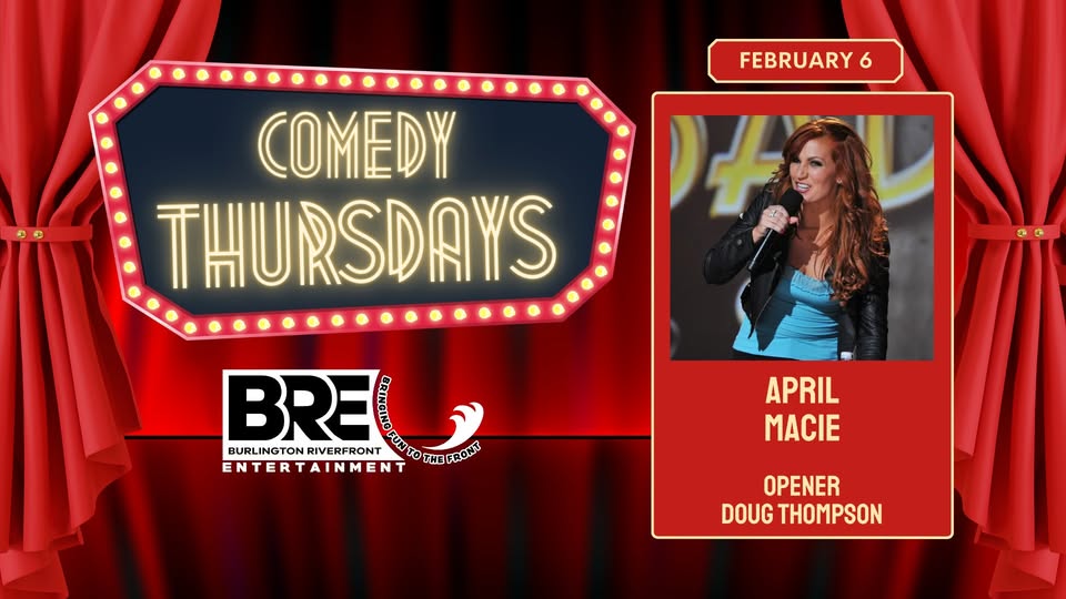 April Maci with opener Doug Thompson will have you rolling in your seats at the Memorial Auditorium. Don't miss this chance to enjoy top-notch comedy right here in Burlington!