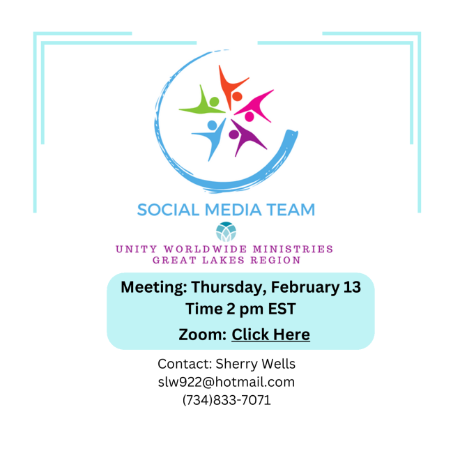 NEW TEAM FOR THE REGION: “Social Media Team”. Social media refers to online platforms and tools that enable people to create, share, and interact with content, ideas, and communities. For Unity churches, social media serves as a powerful ministry tool to extend Unity Truth Principles, foster engagement with congregants, and attract new members. Platforms like Facebook, Instagram, and YouTube allow us to share uplifting messages, promote events, and build a connected spiritual community both locally and globally. Several Unity ministries are successfully creating greater connection within their ministry. See info below. Contact: Unity member Sherry Wells, slw922@hotmail.com