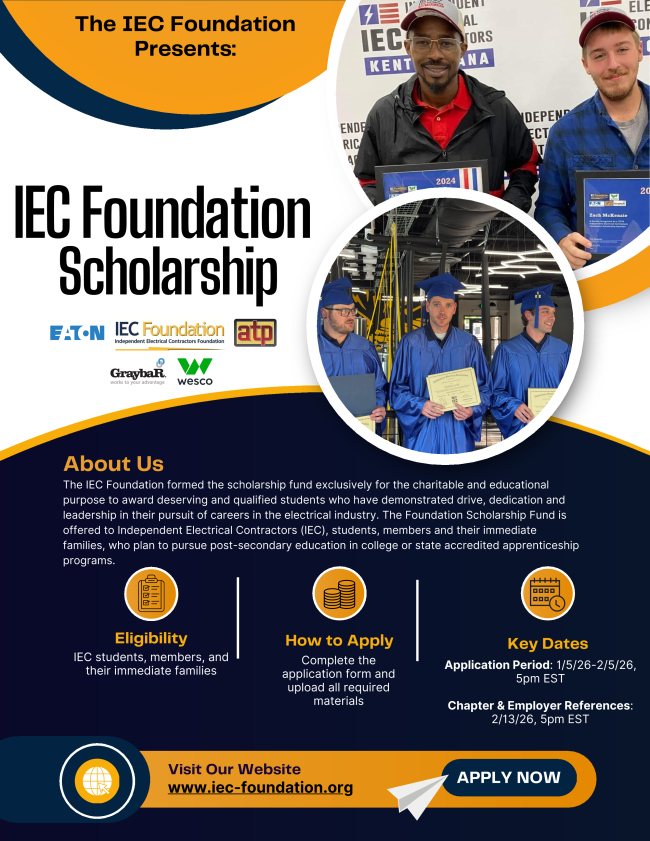 This scholarship was created to remove financial barriers for individuals who demonstrate a strong desire to pursue a career in the electrical industry but may lack the means to do so.