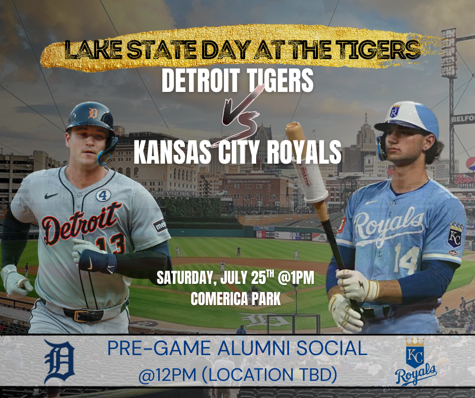 Plan to join us for Lake State Day at the Tigers on Saturday, July 25, at Comerica Park. The Detroit Tigers will take on the Kansas City Royals in what is always a popular event filled with baseball, Laker pride, and great company.