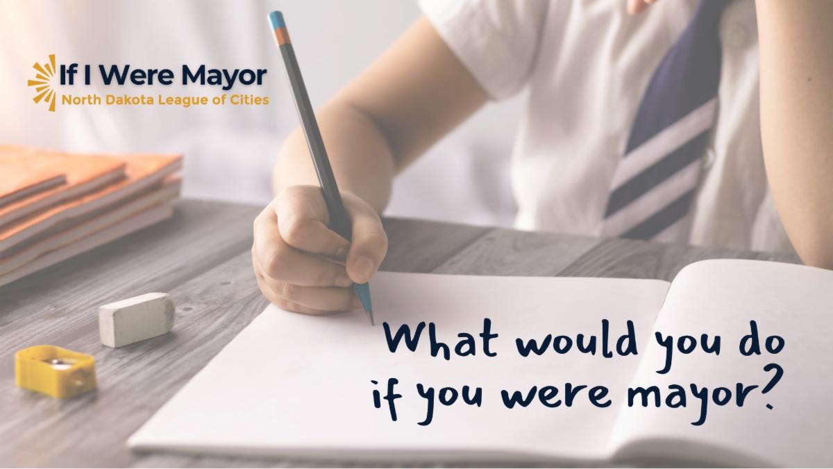 Each spring, the North Dakota League of Cities sponsors a statewide If I Were Mayor essay contest for third and seventh grade students. The contest encourages young people to think about public service and future community leadership. Essays must address why the student feels their community is great and what they would do to improve their city if they were mayor.