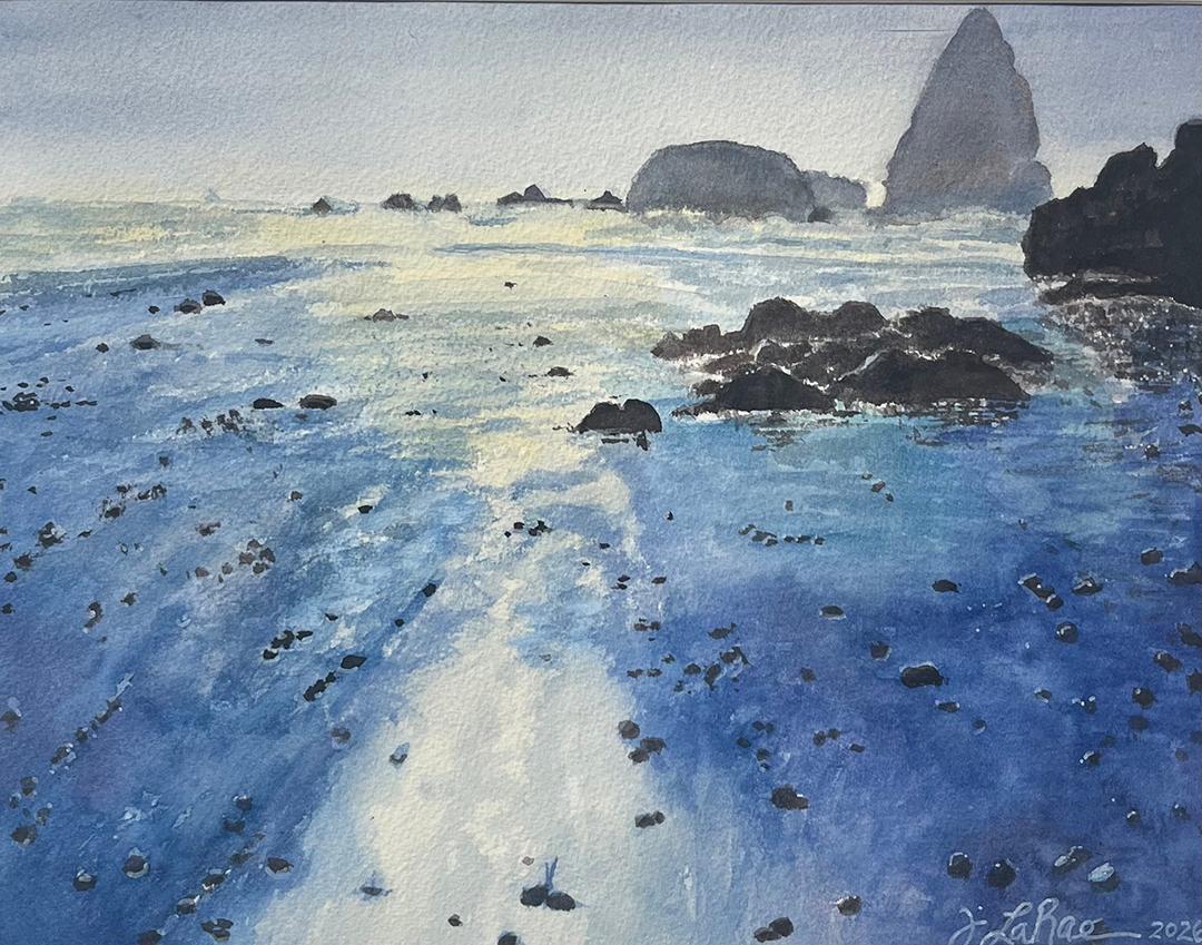 Pictured: Coastal Sparkle, watercolor by Jeanne LaRae in the Winter Members Gallery
