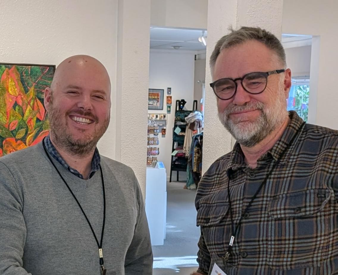 Since the summer of 2024, Tina Heffernan has been a stellar volunteer at the Art Center. Formerly employed as our Community Liaison, Tina returned to Eugene after living in Denver, Colorado and plunged wholeheartedly into volunteering. She wears many hats, including gallery greeting, office assistant volunteering, publicity coordinating, and more. Tina brings an enthusiastic and energetic attitude to anything she does. She has gone the extra mile to work with the exhibits department on multiple projects such as clearing out a packed storage unit or improving gift shop displays. We are lucky to have Tina return to the local community and even luckier to have her back as our Volunteer of the Year.