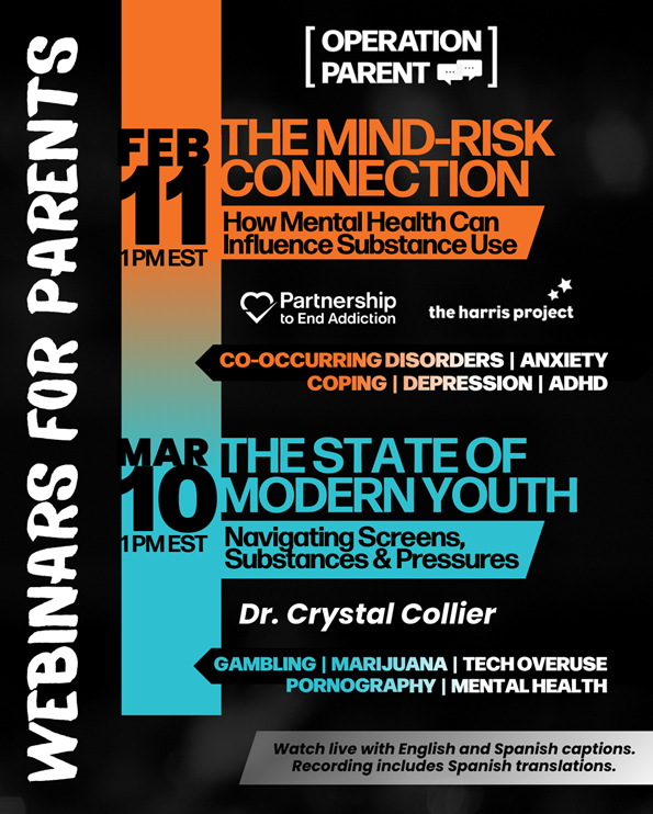 February 11, 1 p.m. EST | The Mind-Risk Connection: How Mental Health can Influence Substance Use - register here.