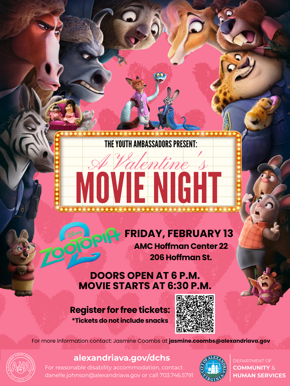 For more information about the Valentine's Movie Night, including how to register for free tickets, click here or contact Jasmine Coombs at jasmine.coombs@alexandriava.gov.