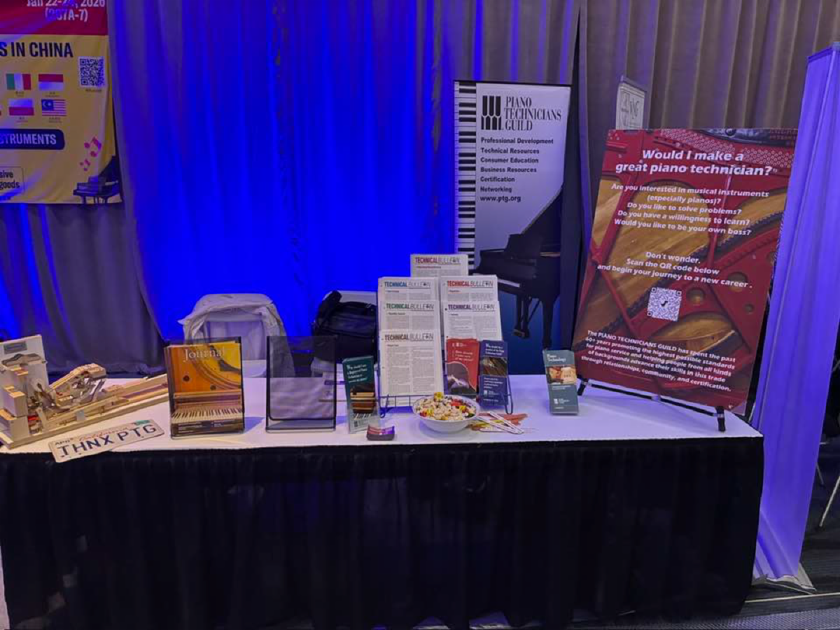 The Piano Technicians Guild will be represented at the upcoming March 21-25, 2026 Music Teachers National Association (MTNA) Conference in Chicago this year where they will be celebrating their 150th anniversary. People come from all over the world to learn, compete and network. PTG’s exhibit hall booth will feature technician referrals and information on piano service and piano technology as a career. Encourage your clients who are coming to MTNA in March to stop by booth 306 on the 7th floor of the Chicago Marriott Downtown Magnificent Mile and let us know that a PTG member cares for their piano. We have great giveaways!
