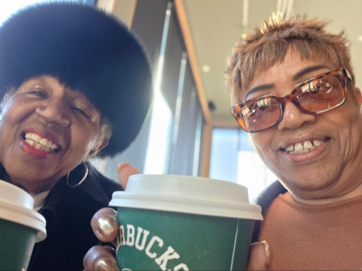 | | Revs. Laurice Jones-Wilks and Costella Forney recently met together and enjoyed their coffee time at Starbucks in Harrisonburg. | | |
