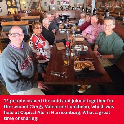 The Shenandoah River District Staff spent time with our clergy this month at a series of Valentine lunches. We met at four locations across the district to visit with and celebrate the incredible work our pastors do.