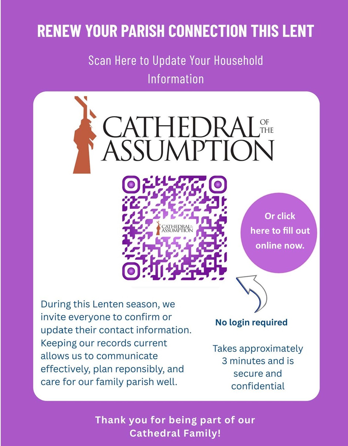 Simply download and choose your parish. You can access pertinent information from the palm of your hand. Be sure to subscribe to receive push notifications. Beyond Cathedral information, you can also look up other parishes throughout the United States who subscribe to the same platform.