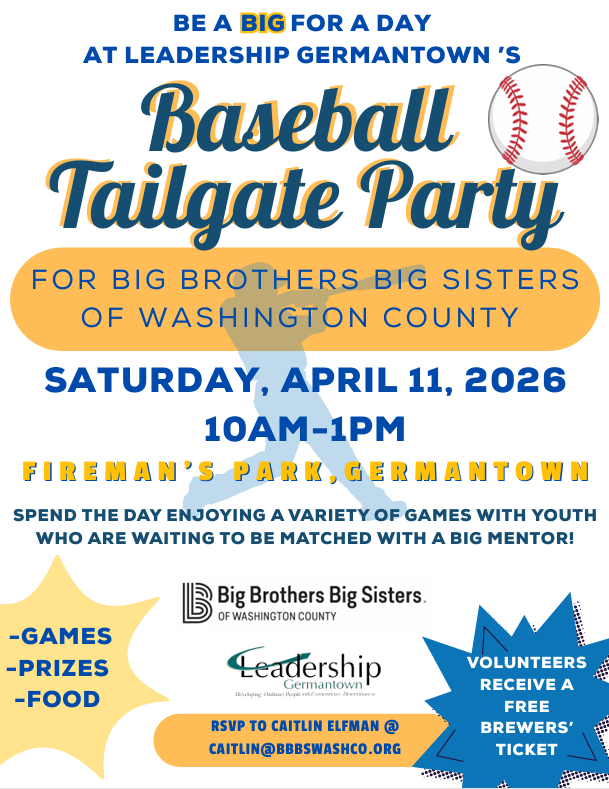 - bringing knowledge to Germantown about the need for "Bigs" for about 20 Germantown kids who are in need of a "Big". The Baseball Tailgate party will provide a fun event for these "Littles" and the community but to also raise awareness of how people can support the organization and the kids. See the Baseball Tailgate flyer.
