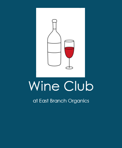 - Wine Club: To all wine lovers out there we are thrilled to announce our new wine club here at East Branch Organics! Read more about it below, but we think this will be a fun and educational way to discover some new and unique wines. We hope you will give it a whirl!