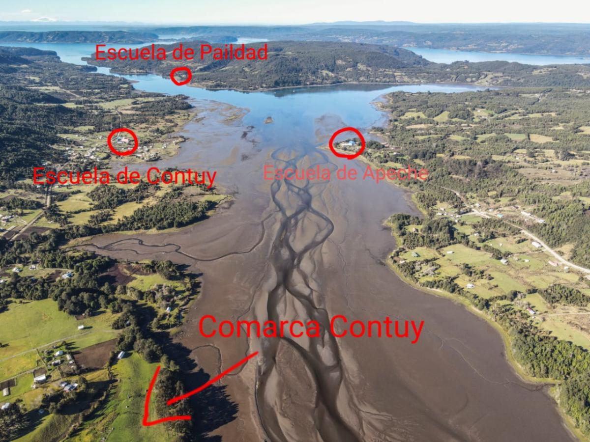 Aerial view of Comarca Contuy & Paildad River estuary with three rural schools | |