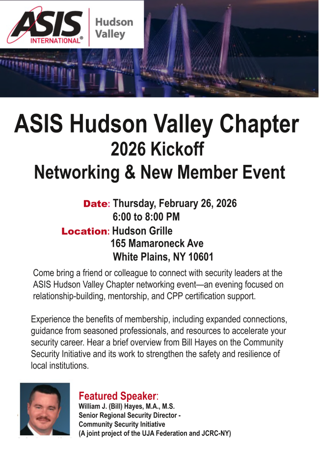ASIS Hudson Valley Chapter | 1625 Prince Street | Alexandria, VA 22314 US
