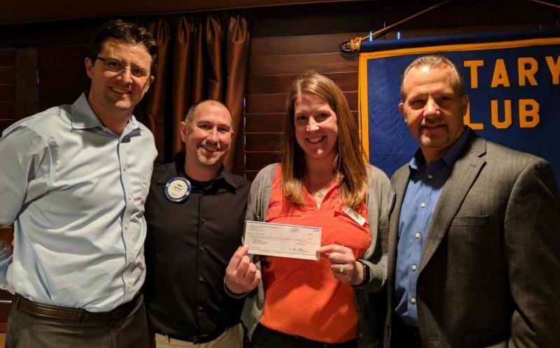 Ryan Duncan Anderson (Child Care Links Board Member and Pleasanton Rotarian), Todd Utikal (Pleasanton Rotary Foundation Board Secretary), Vanessa Dilks, and Brian Dunkel (Pleasanton Rotary Foundation Board President).