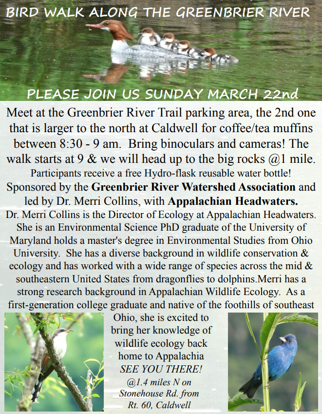 Contact greenbrierwatershed@gmail.com or mcollins@appheadwaters.org with questions.