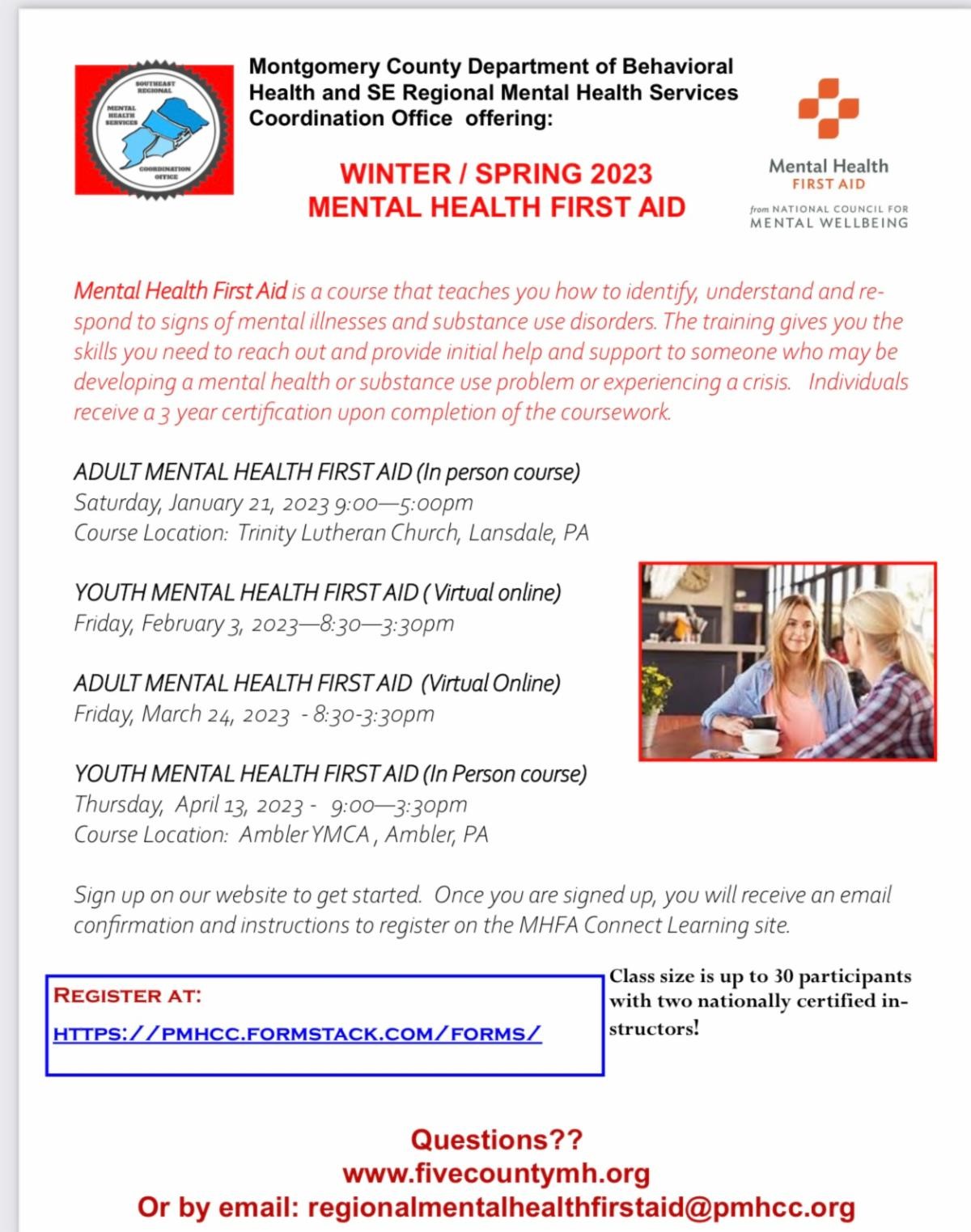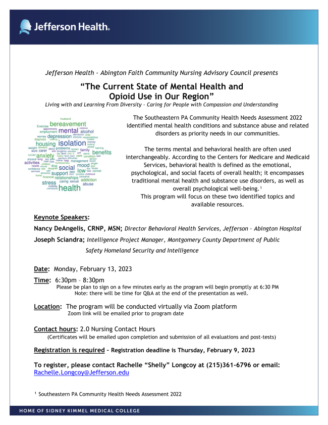 If you are interested in providing in-person feedback, please join a stakeholder feedback session on February 9, 2023 at either 12 pm or 5 pm. The sessions will take place at NAMI Montgomery County, 100 West Main Street, Suite 204, Lansdale, PA 19446. Food will be provided. Please click here to RSVP