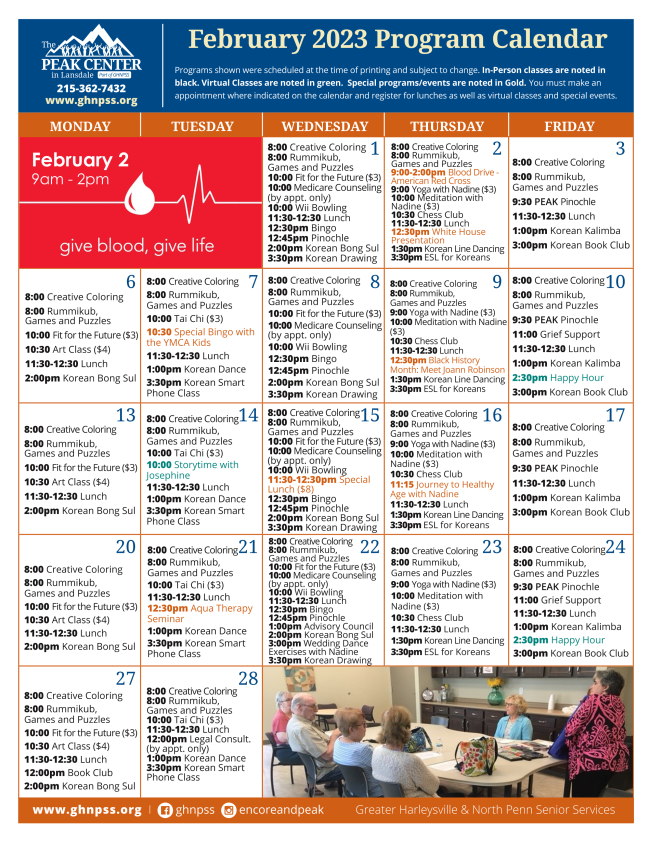 Starting now, anyone can schedule their tax appointments. Tax preparation appointments with AARP will be available from February 3 - April 14. To sign up, contact Encore (215-256-6900) or PEAK Center (215-362-7432).