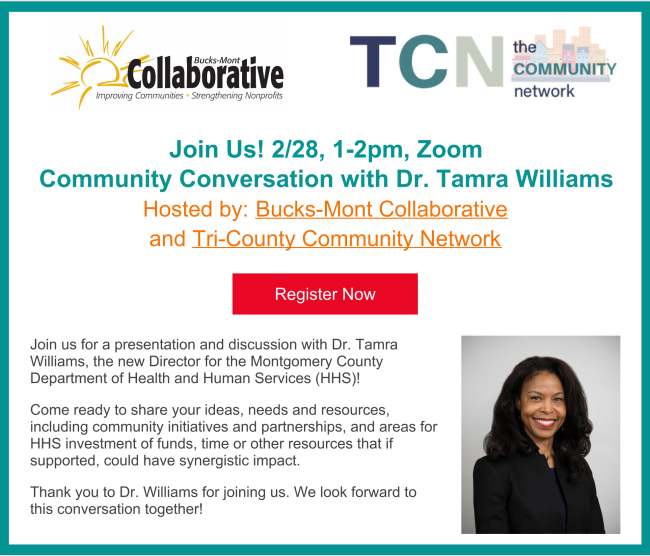 Join us for a presentation and discussion with Dr. Tamra Williams, the new Director for the Montgomery County Department of Health and Human Services (HHS)!