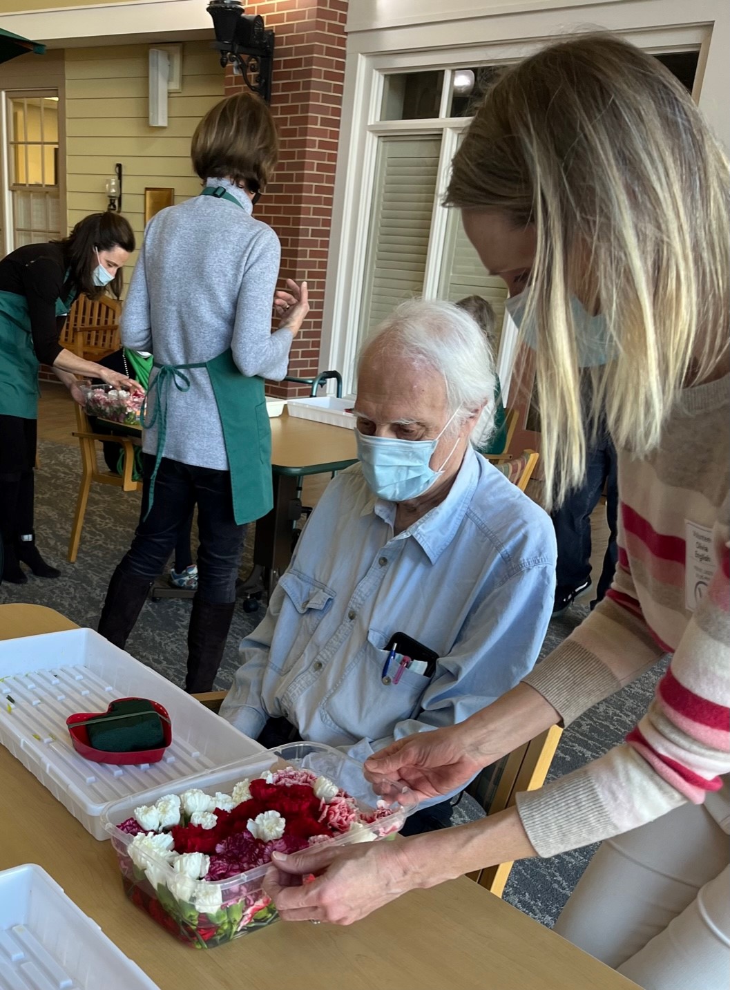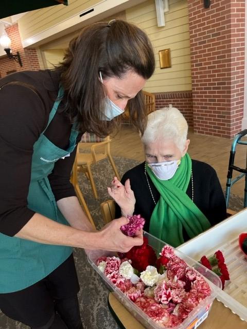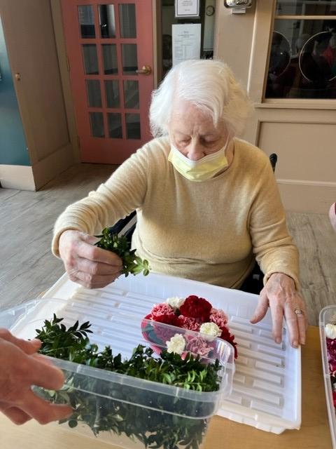 New Canaan Garden Club volunteers came to Main Street to help our residents create beautiful pave arrangements with flowers, leaves, and other materials - including greenery from Clare's garden - arranged closely together in a low container. Thank you Garden Club for facilitating this wonderful activity, it was enjoyed by our residents!