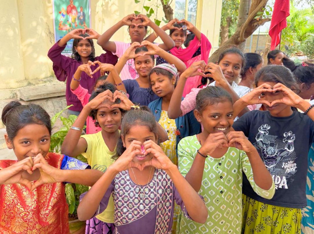 | | Pictured above: Girls at Siloam Boarding Home share their love by forming hearts with their hands. | | |