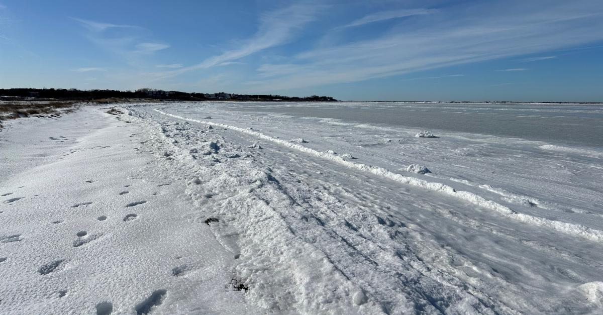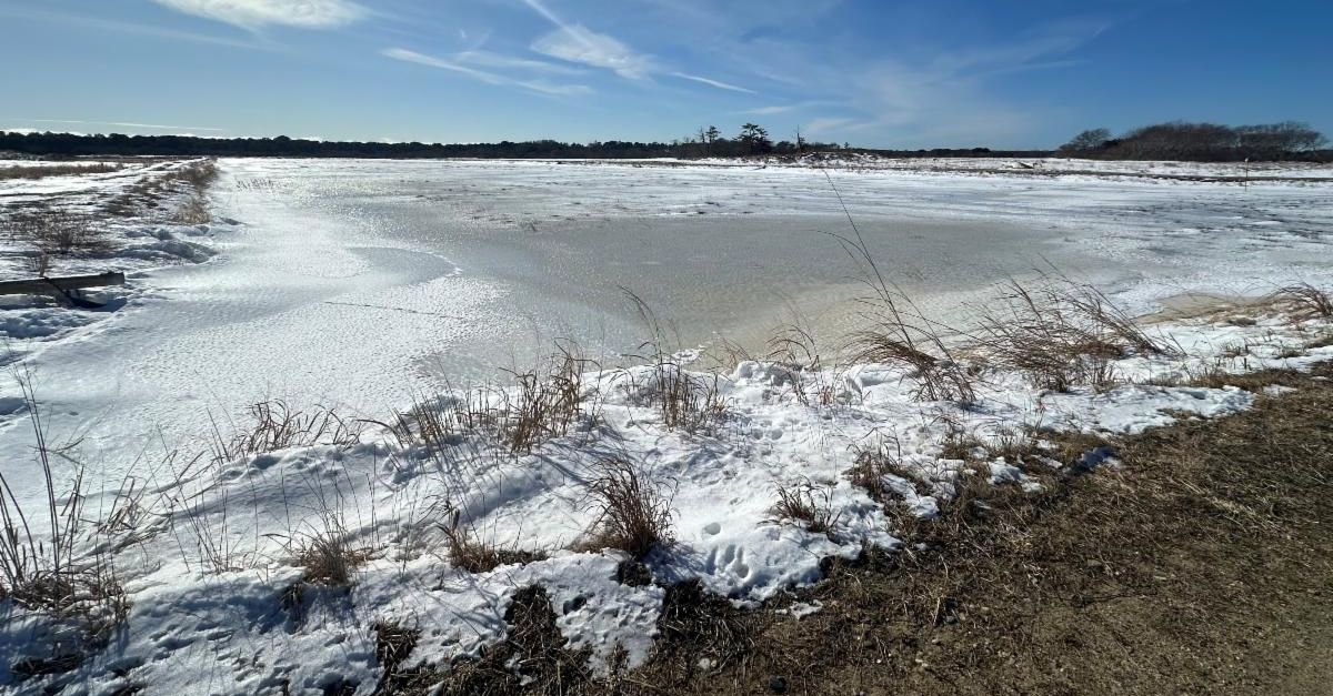 | | Nantucket Harbor during the recent winter freeze | Golden hour at Windswept blanketed in snow | | Milestone Cranberry Bog is flooded to freeze each winter | | | |