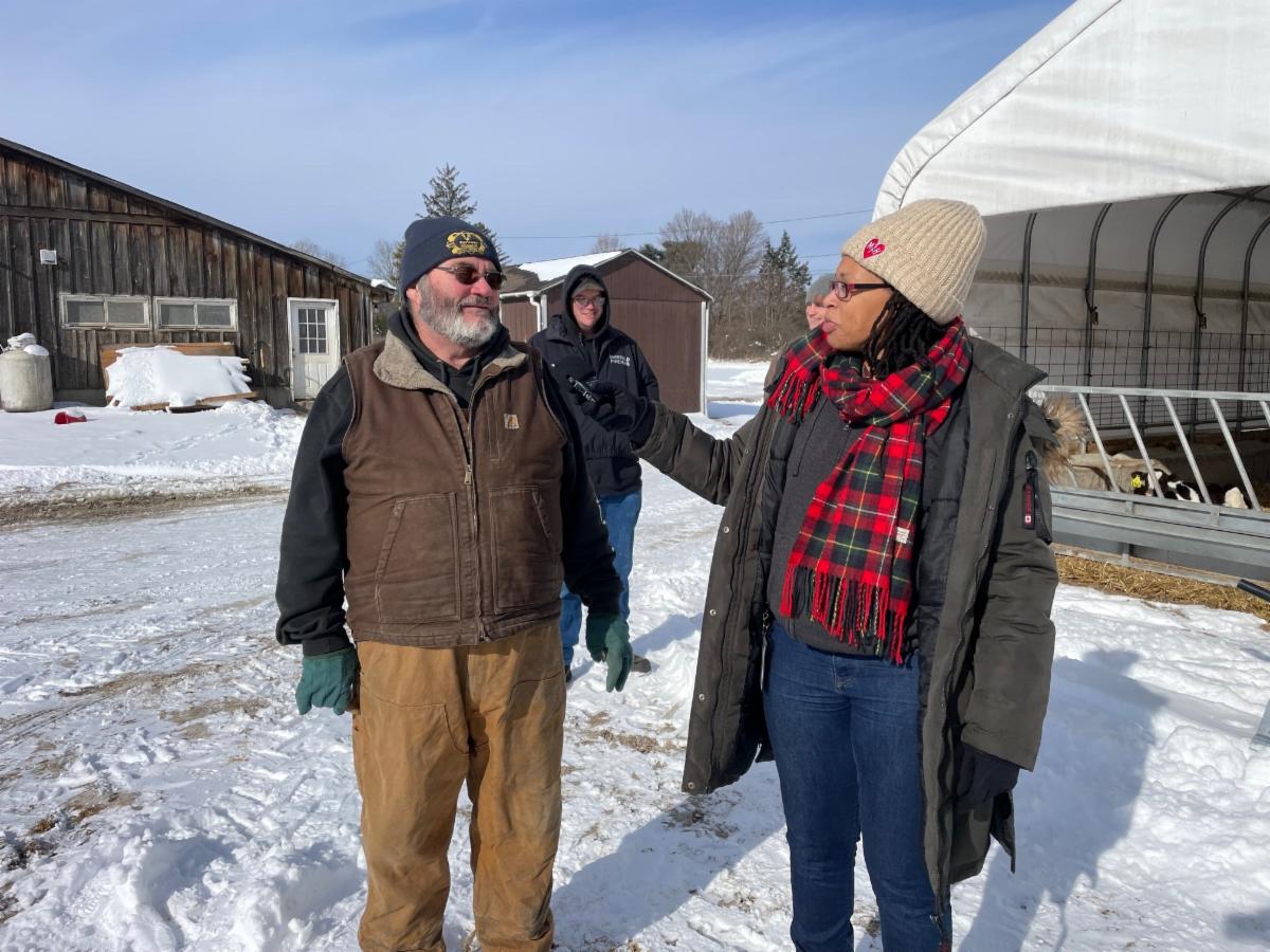 Jake Levin recently visited with Mary Berle and toured her beautiful farm, Lila's Mountain Farm, a third-generation, woman-owned sheep and flower farm in Great Barrington, MA. They discussed needs and opportunities for strengthening our regional fiber and meat value chains, and Jake enjoyed learning more about the farm's operations. Nourished on the farm's own grass, Berle's sheep provide meat and wool, and their rich manure is used to grow flowers.