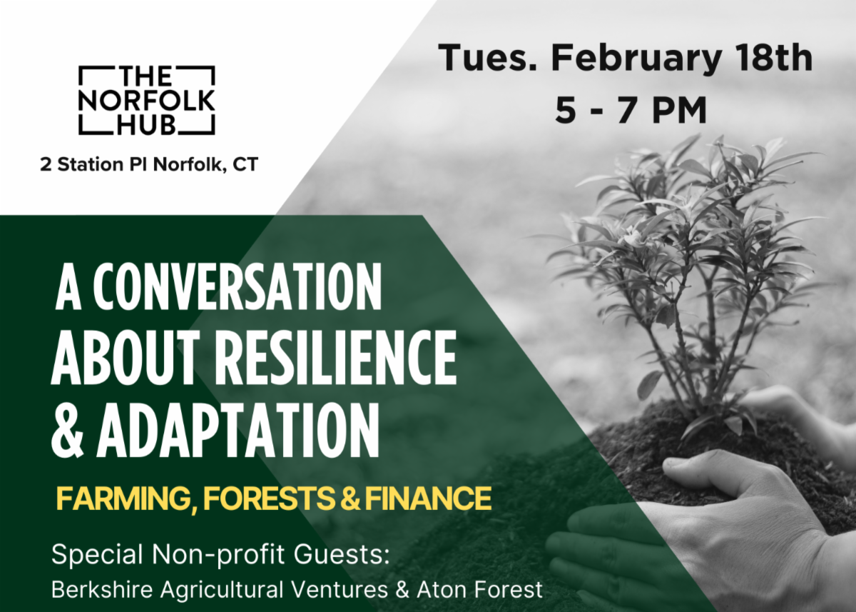 BAV's Ben Crockett will be speaking at The Norfolk Hub's Conversation about Resilience and Adaptation, addressing how local Berkshire and Connecticut organizations are working to foster a more sustainable bioregion. $10, registration is required.