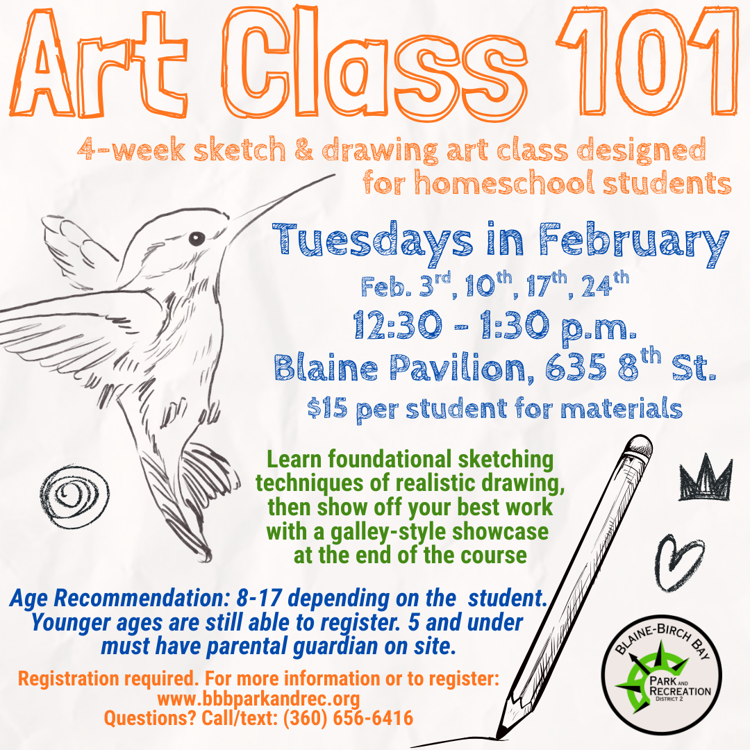 Tuesdays in February, Feb. 3rd, 10th, 17th, and 24th, 2026 Time: 12:30 to 1:30 p.m. Location: Blaine Pavilion, 635 8th St. Cost: $15 per child, registration required.