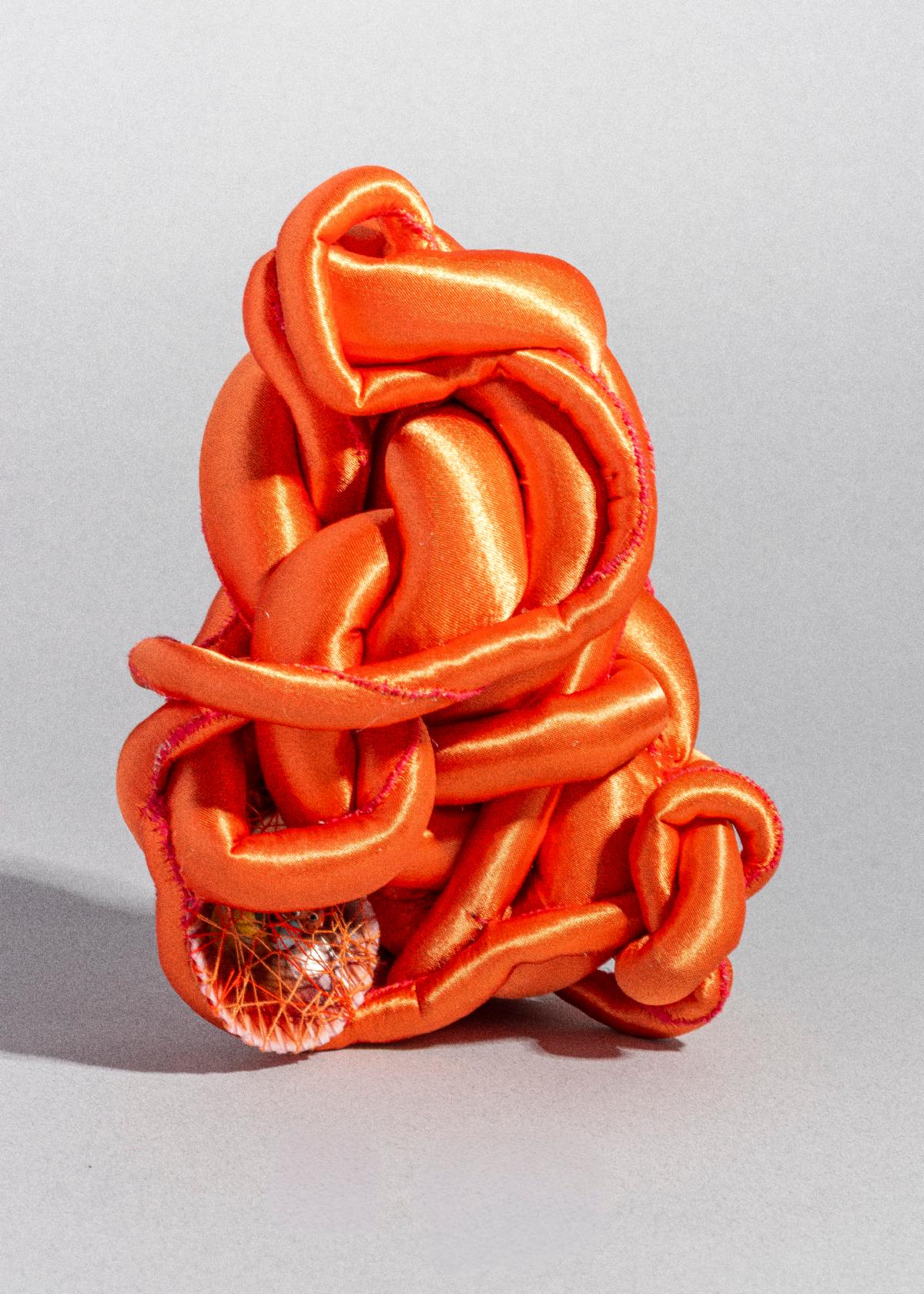 Porcelain, tableware, ornaments, and handcrafted objects—once part of homes unknown to me—are gathered and carefully incorporated into the textile forms. Treated as small treasures, these objects are nestled among the soft branches of the sculptures, inviting an attentive gaze to slowly uncover them. Their presence evokes layers of domestic history, intimacy, and displacement, suspended within a tactile, sculptural landscape.