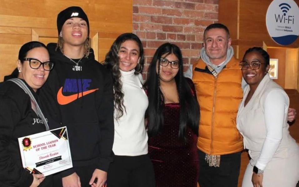 | Shanda (Liaison of the Year), Joey (Mentee), Anamilena, Carmen (Mentee), Luis (Mentor) , Jasmine (Director of the Norwalk Mentor Program) | |