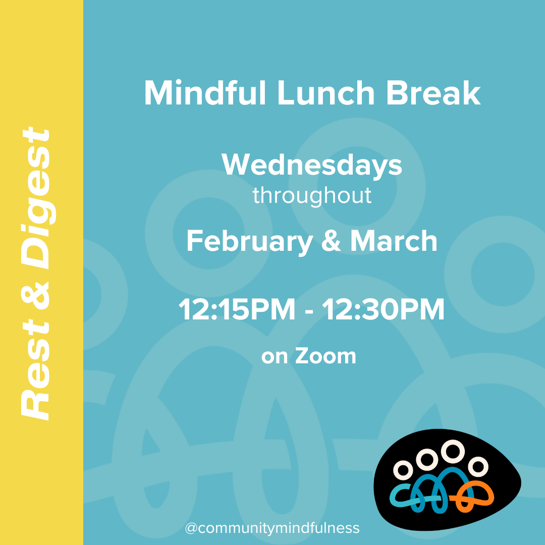 Join members of the Backbone Staff as we commit to Wednesdays with Community Mindfulness Project from 12:15 PM - 12:30 PM throughout February and March.