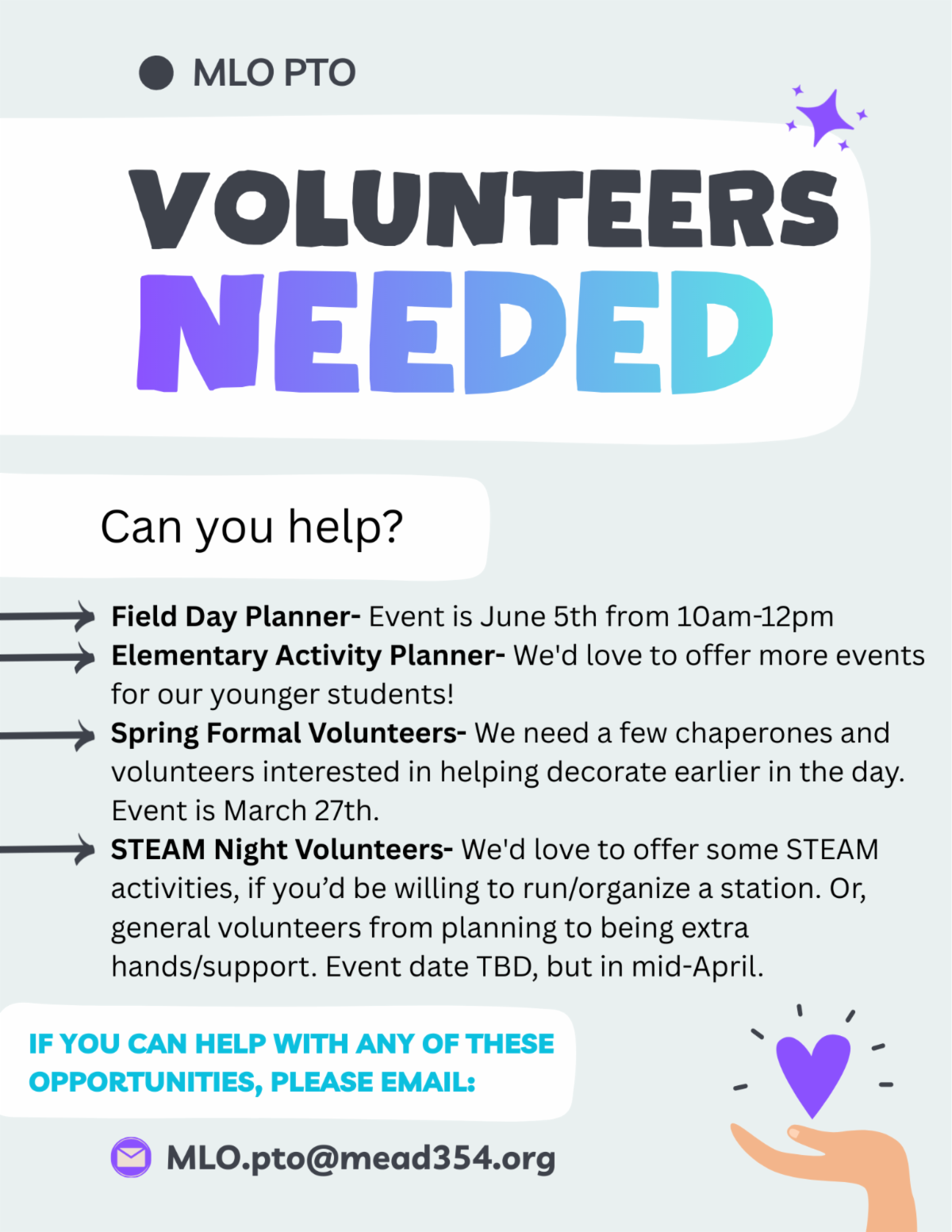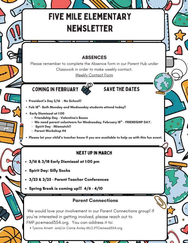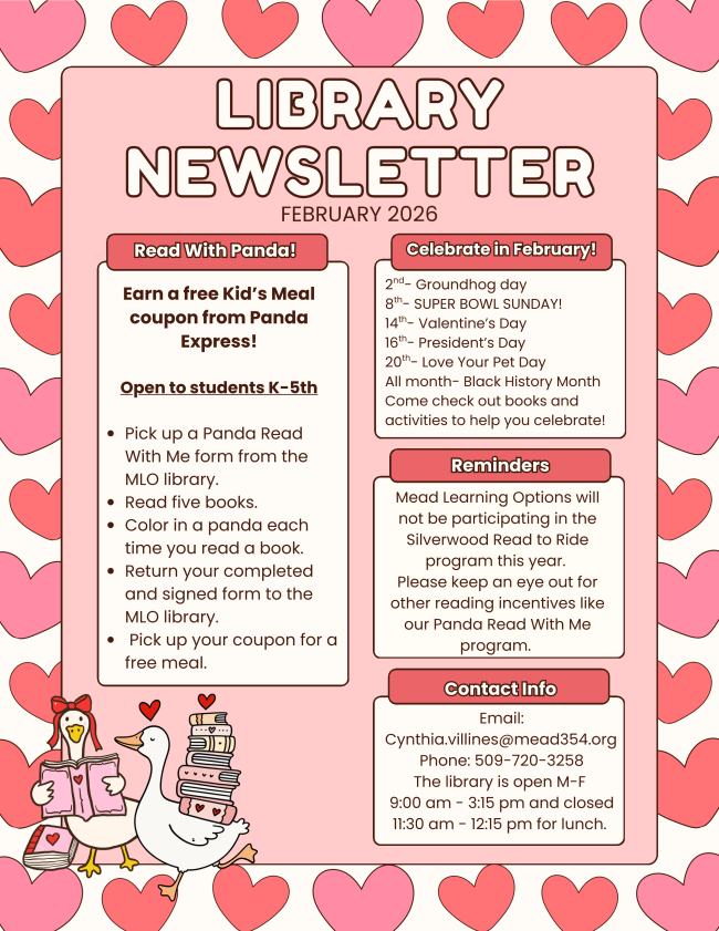 We will be hosting two virtual informational meetings toward the end of February for families who would like to learn more about Mead Learning Options. During these meetings, we will also share information about potential structural changes that may take place beginning in the fall. Additional details, including dates, times, and links to join the meetings, will be shared in the coming days. We encourage interested families to attend and look forward to connecting with you virtually.