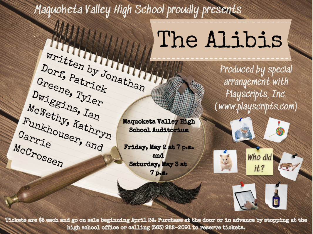 Will Detective Casey Neptune solve this mystery? What embarrassing secrets are the suspects hiding? Join us on a hilarious journey of laughs, twists, and totally unexpected confessions. Don’t miss MV’s spring play! Tickets are $5 each and can be purchased at the door or in advance at the high school office beginning April 24.