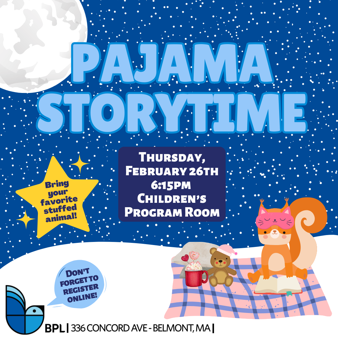 Get in your pajamas, bring a fuzzy friend, and join us for some bedtime stories with librarian Rosanna at the brand new Belmont Public Library!