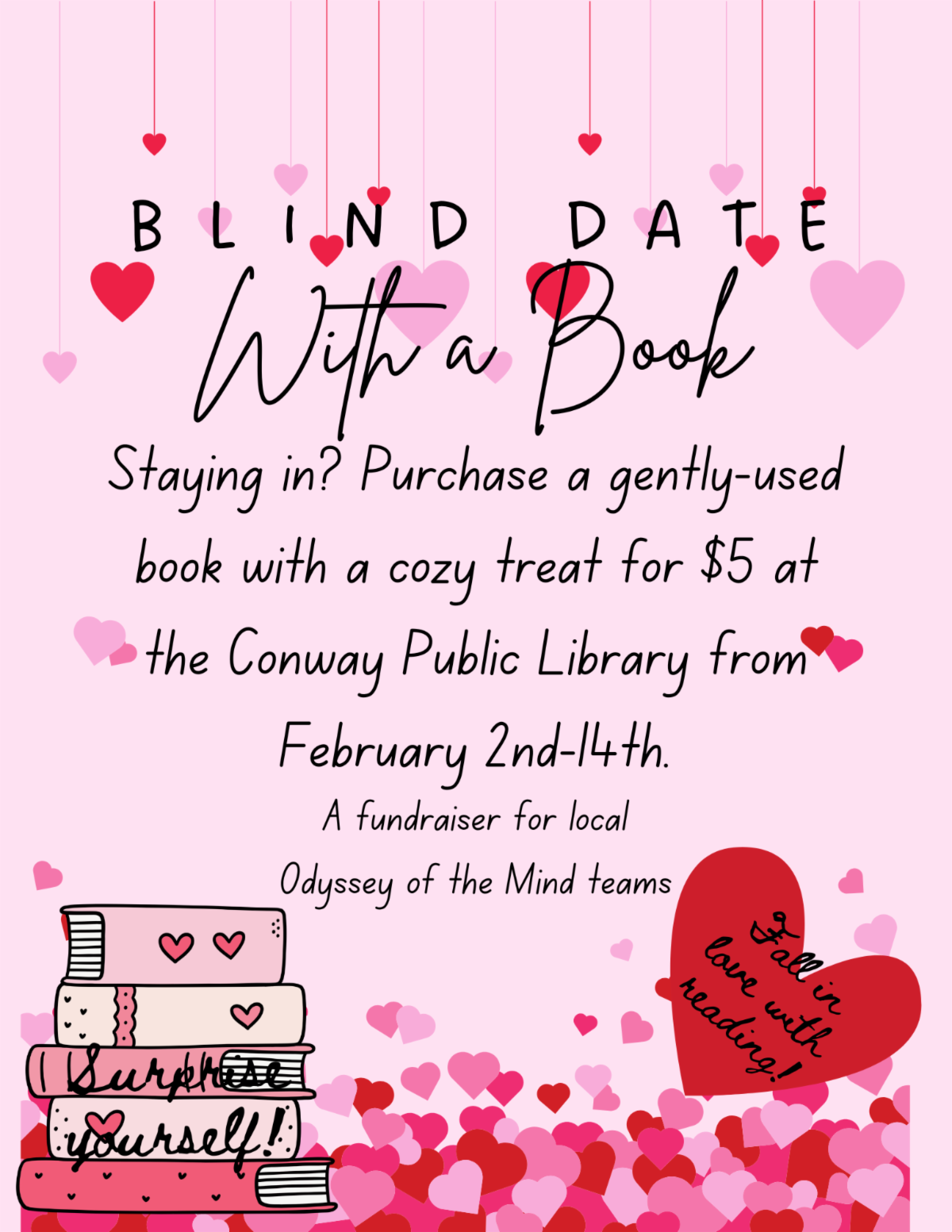 Join us for our “Blind Date with a Book” event, where you can discover captivating reads for just $5 while supporting local Odyssey of the Mind teams. Each book will be wrapped with a brief description, allowing you to get a glimpse of its contents without seeing the title.