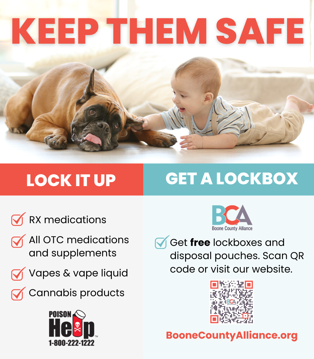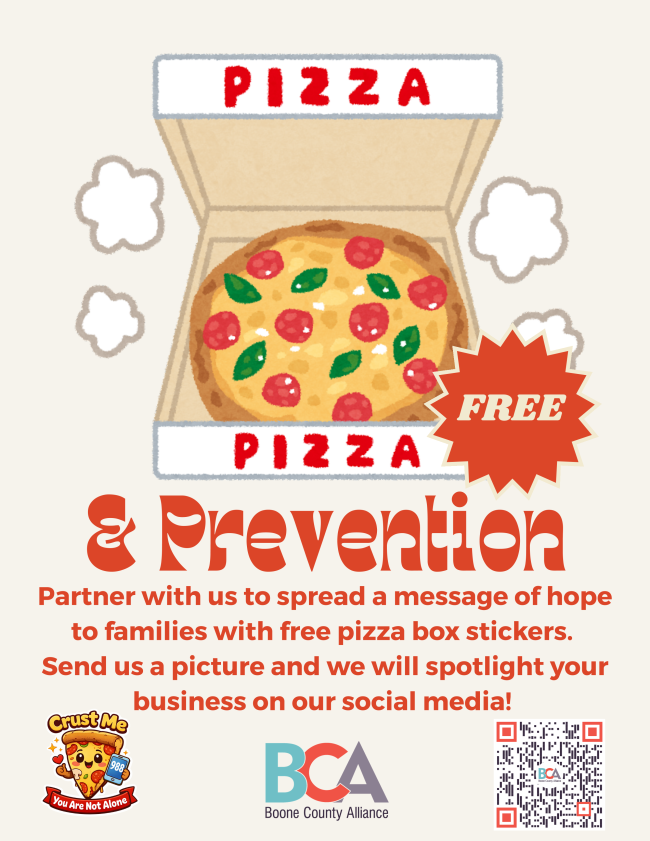 The Boone County Alliance kicked off the new year with strong momentum across all prevention goals and community initiatives. Vaping education materials were shared with local schools, medication lockboxes were delivered to Boone County homes through the Magnet Mailer Initiative, and mental‑health resources reached more than 150 families through Fiesta’s food distribution.