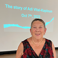 On September 3, we were honoured to have Jacqui Vital, the mother of Adi Vital Kaploun z”l, share the heartbreaking story of her beloved daughter, who was murdered in her safe room on October 7. Jacqui's strength and love was experienced by the over 100 people in attendance, holding the room in complete silence. She shared memories of Adi's beauty, tenacity, and her role in helping to found Kibbutz Holit. Jacqui also spoke about Adi's children, Negev and Eshel, and their survival—a testament to resilience amidst unimaginable loss.