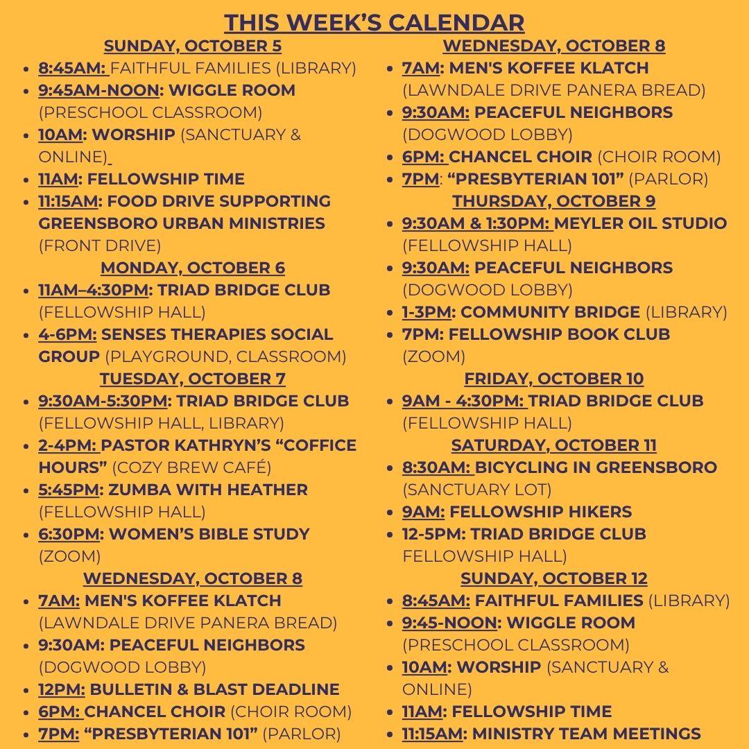 The remaining weeks of the year do not slow down, so while I encourage each of us to pace ourselves - yes, including myself - I do ask and encourage you to add the upcoming events below to your respective calendars and do your best to make as many of them as you can - while I am sure you will not be able to make all of them, providing feedback to the leadership of the various ministry teams can help allow us to know if we are hitting (or missing) the mark on what we should provide as activities and events as a Fellowship family.
